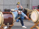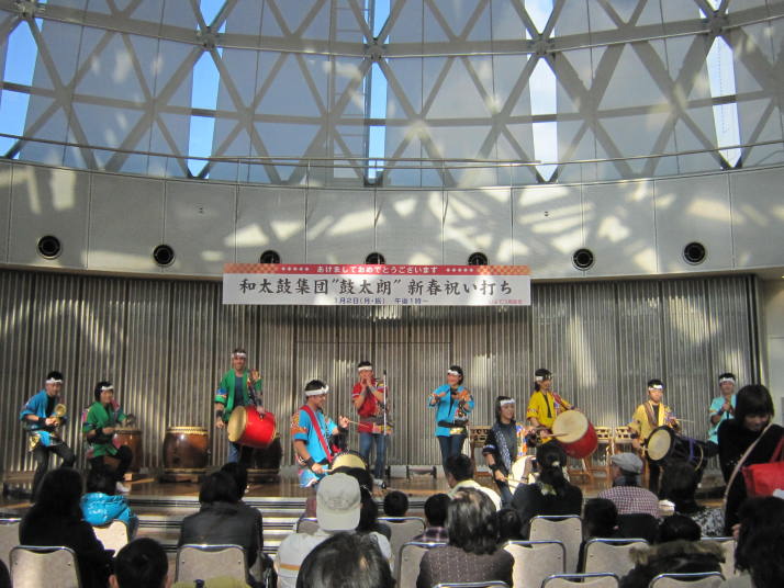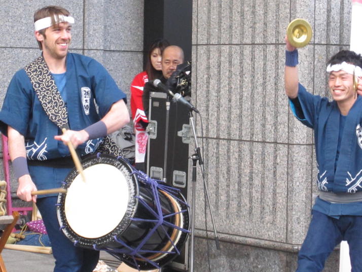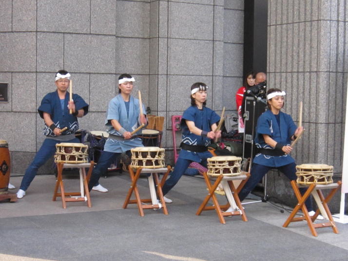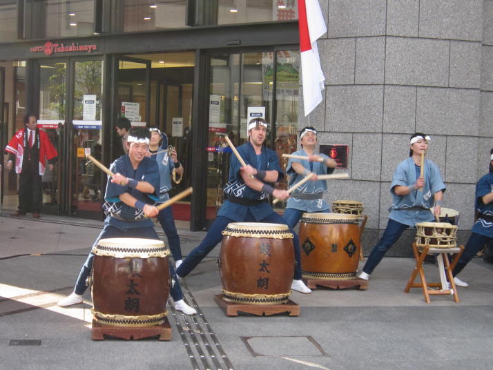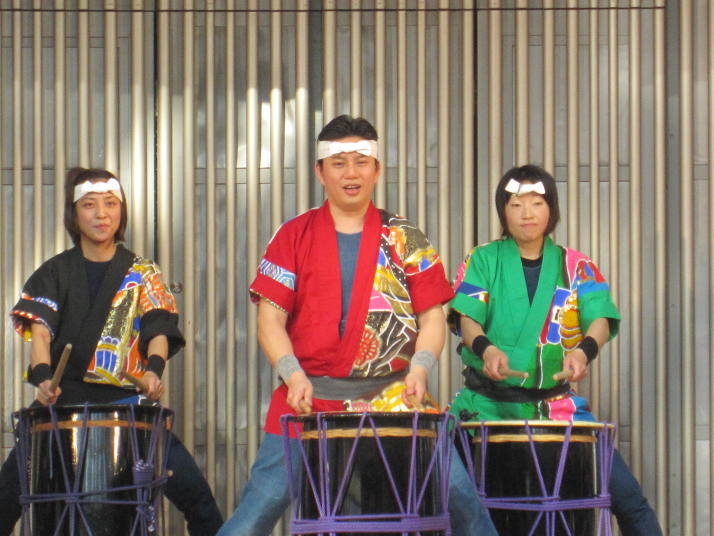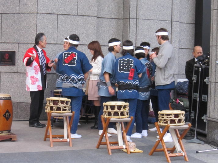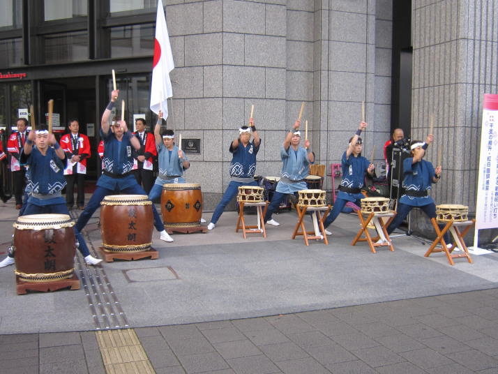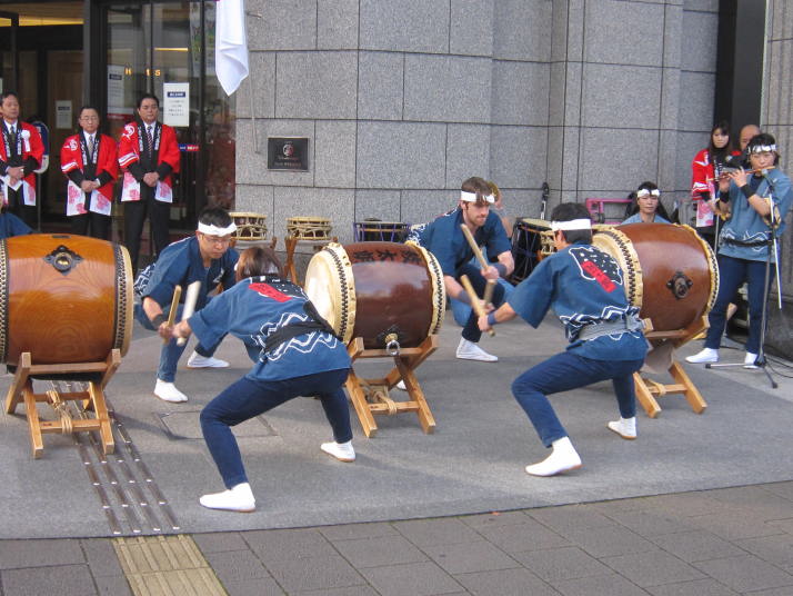 まずは開店前のオープンセレモニーで4曲(出陣・勝鬨・鼓魂・二挺太鼓)を演奏しました。