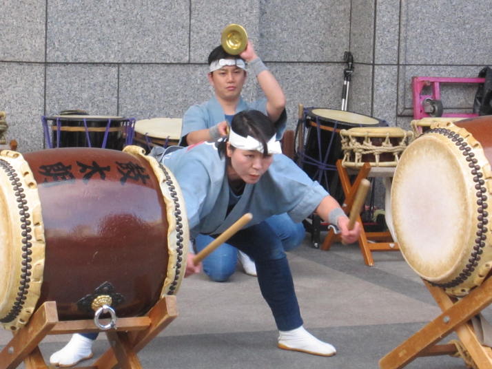 本場の迫力ある八丈太鼓の演奏を、松山の皆さまにご覧いただくことができました(^^♪ リリーさん、ありがとうございました☆ |